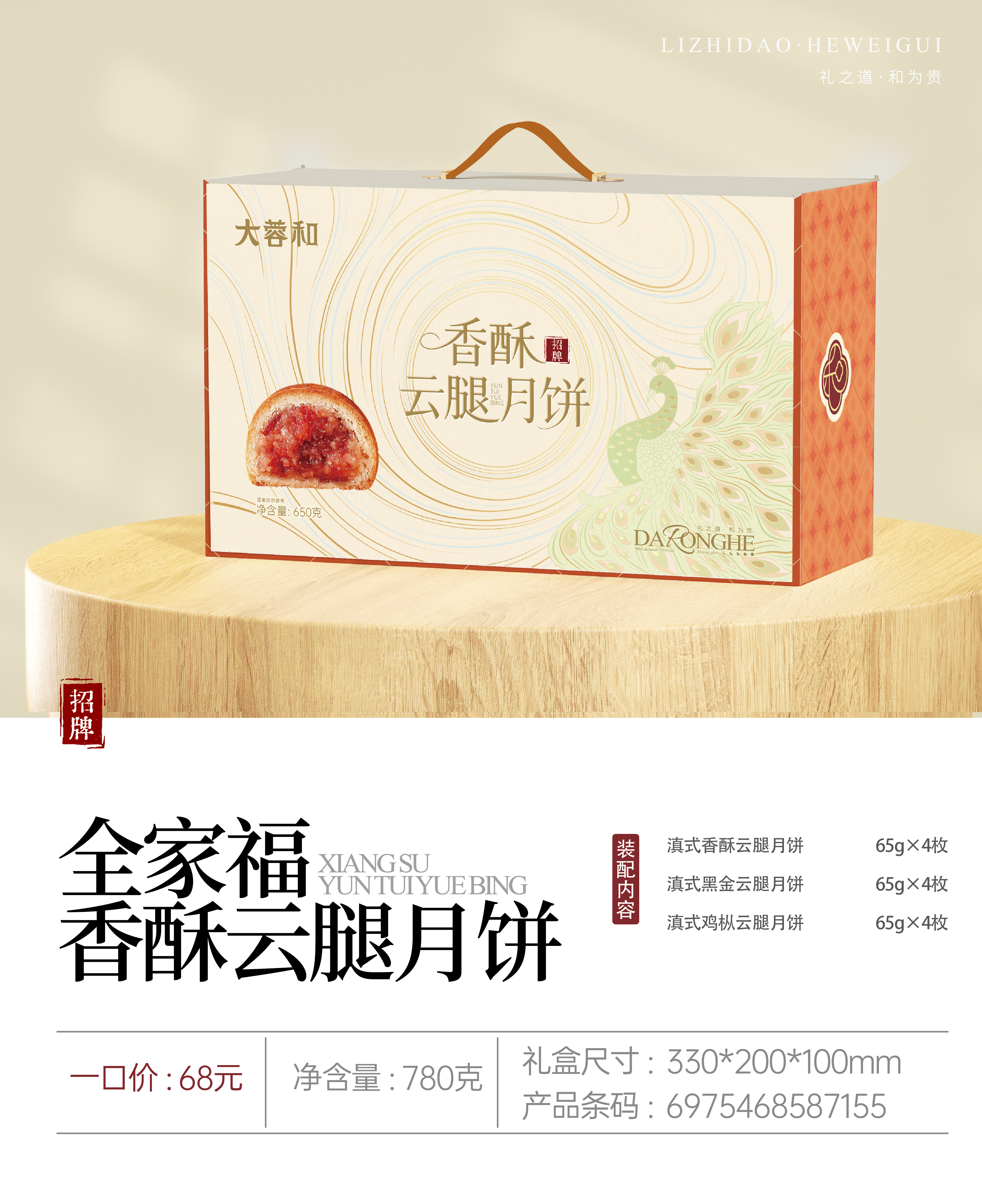家庭装香酥云腿月饼